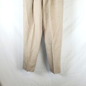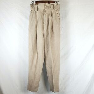 Vintage 80s Christy Girl tan high-waisted trouser pants. Tapered leg. Button and zipper closure. No material tag but feels like a linen blend. Good condition. Tagged size 10, fits more like a 0/2.