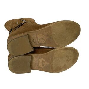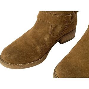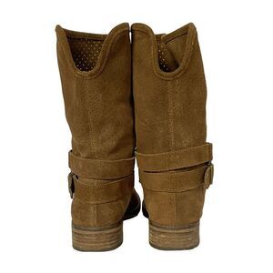 Vintage Chroma Pierced Suede Booties Boots Pull-On Brown Block Heel Leather 8M