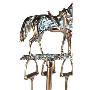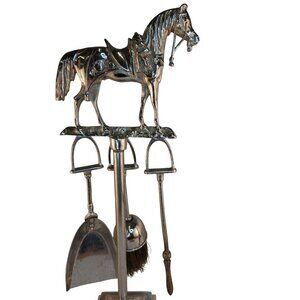 Vintage Chrome Horse Tabletop Equestrian Themed Fireplace Tool Set