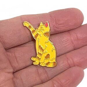 Vintage Chronicle Books Orange Tabby Cat Brooch Yellow Orange Metal Approx 2"L
