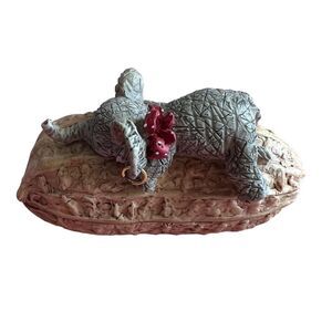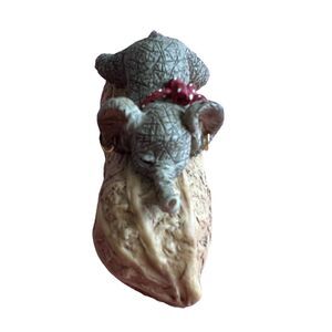 This vintage Chubby Charmers figurine features a cute elephant mouse named Poppy, with a charming expression and a playful design. Made from high-quality resin, this figurine is a great addition to any collection of wild animal figurines. The brand is well-known for its attention to detail and its unique designs that capture the essence of the animal. This figurine was crafted in the year 2000 by Martha Root, and is a wonderful example of her talent for creating charming and collectible figurines. The piece is perfect for elephant lovers, and is sure to be a treasured addition to any collection. The country/region of manufacture is unknown, adding to the intrigue of this delightful figurine.
