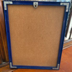 Has been preserved in custom, blue, metal frame with plexiglass front