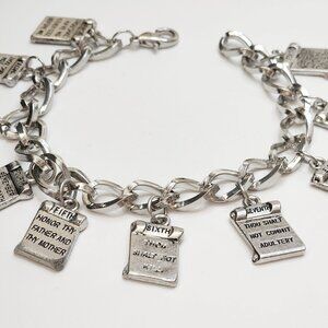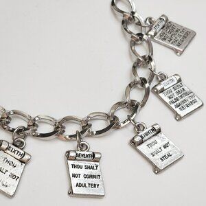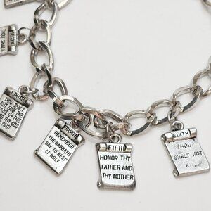 Vintage Chunky 10 Commandments Silver Tone Bracelet Christian Religious 8"