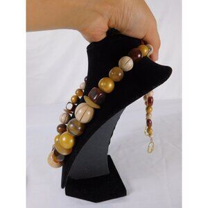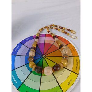 Vintage Chunky Bead Necklace Brown Cream Gold Oversized Statement Retro Jewelry