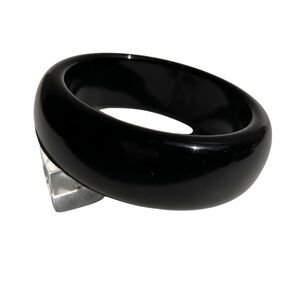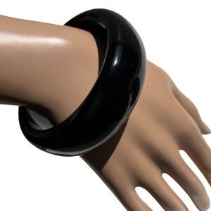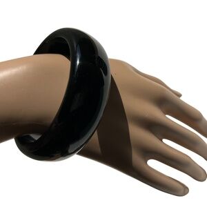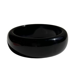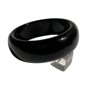 Vintage Lucite bangle bracelet in solid black. Great bangle to wear alone or make a stack with other bangles.