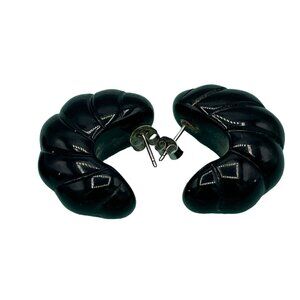 Vintage Chunky Blue & Black Acrylic Hoop Earrings 2 Pair