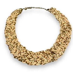 Elevate your accessory game with this stunning vintage chunky braided seed bead necklace, featuring a chic chain clasp. Crafted with meticulous attention to detail, this piece exudes retro charm and timeless elegance. Whether you're dressing up for a special occasion or adding flair to your everyday ensemble, this necklace is sure to turn heads and spark conversations.