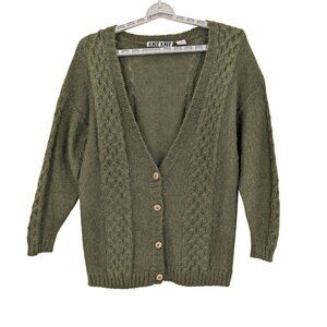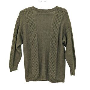 Vintage Chunky Cable Knit Cardigan Button Up Mohair Blend Textured Cottage Cozy