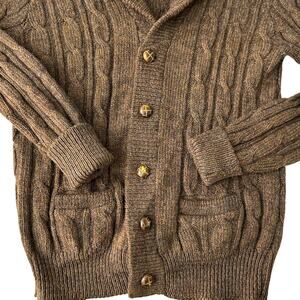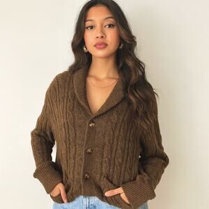 True Vintage Chunky Cable Knit Shawl Collar Grunge Cardigan Rustic Brown Wool Blend
