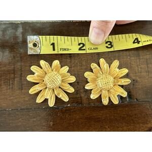 Vintage Chunky Daisy Flower Gold Tone Clip On Earrings 1990s