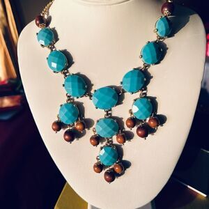 Vintage Chunky Faux Turquoise & Real Wood Avon Statement Bib Necklace