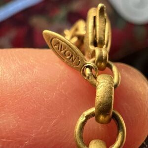 This vintage Avon necklace is hardy and fun. It has gem cut oval turquoise of the faux variety and yet actual wood beads. A nice blend of nature and modern culture. I think this goes well with jeans or retro polyester pantsuits or general bohemian fashions. The necklace is 17” and has a detachable chain extension of 3.5”.