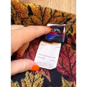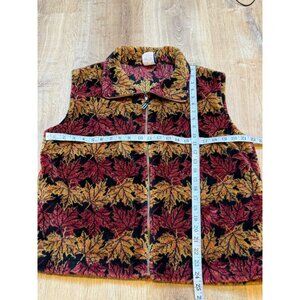 Vintage Chunky Fleece Vest Fall Leaves Print Made in Canada