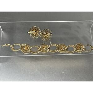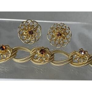 Vintage Chunky Gold Bracelet Statement Citrine & Matching Clip On Earrings Regal
