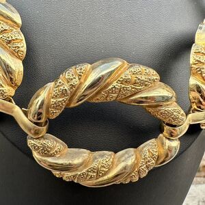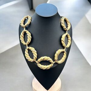 Aesthetic: vintage necklace, gold chain, rope link, statement jewelry, 80s style, 90s fashion, chunky necklace, Trifari style, glam jewelry, mob wife aesthetic, bold chain, retro chic, gold tone, vintage glam, Y2K revival, statement piece, high fashion, unbranded vintage, luxe look, heavy necklace
