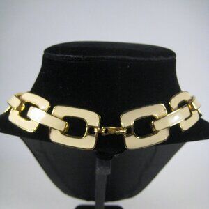 Vintage Chunky Goldtone Cream Enamel Link Chain Necklace 18 inch Collar Statemen