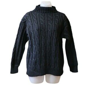 Vintage Chunky Heavy Cable Knit Black Sweater LG