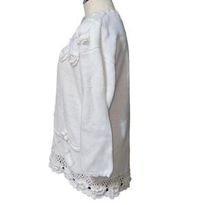 Colleen's Collectibles Vintage Chunky Knit embroidered Cream Beige Sweater crochet lace raised roses size large. Victorian, chunky, grandmacore, momcore, retro, cabincore. Length 29”, bust 24”