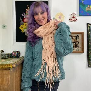 This cozy and comfy piece was rescued from an attic filled with clothing from the 1970s and early 80s.  There were many hand knit pieces in the collection, but this was one of the few made for an adult.  This sweater is a massively oversized piece and its the perfect sweater to snuggle up in when you need a comfort piece.