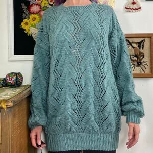This cozy and comfy piece was rescued from an attic filled with clothing from the 1970s and early 80s. There were many hand knit pieces in the collection, but this was one of the few made for an adult. This sweater is a massively oversized piece and its the perfect sweater to snuggle up in when you need a comfort piece.