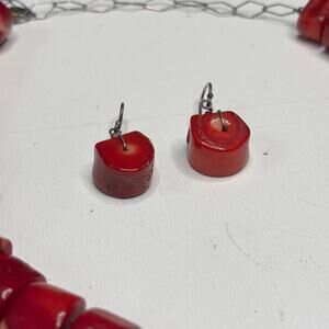 Vintage Chunky Red Coral Choker Necklace, Earring Set