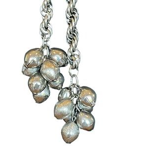 Vintage Chunky Rope Lariat Bolo Silver Tone Necklace Tassel Beads 28" Length