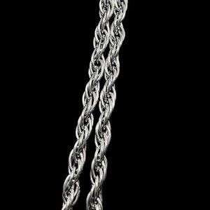 This vintage chunky silver tone rope chain necklace adds a bold statement to any outfit. The 50" length allows versatility in styling, while the silver tone lends a classic, timeless appeal. Ideal for those who love vintage accessories.