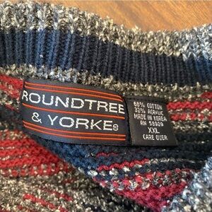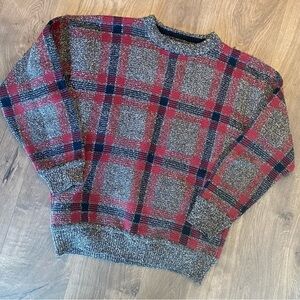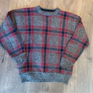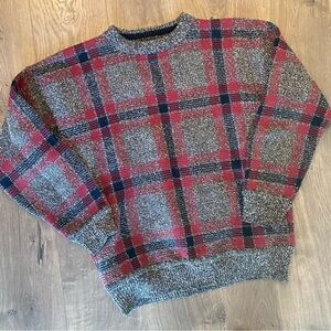 Vintage Chunky Square Red Gray Oversized Grandpa Sweater XXL. Crewneck style sweater