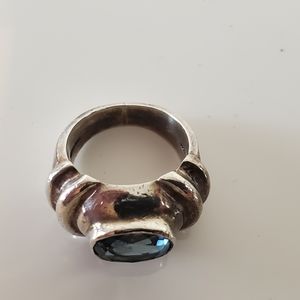 Vintage chunky sterling silver ring with Aquamarine setting size 5 weight 9.1 grams