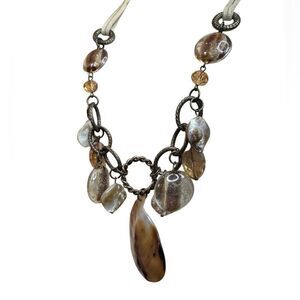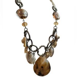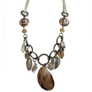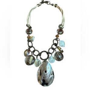 Vintage Chunky Abalone Shell Pendant Leather Cord Necklace