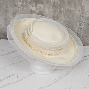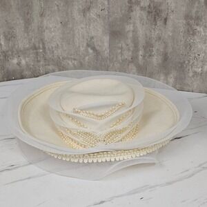 Vintage Church Hat Cream Formal Dress Hat Pearl Beaded Wedding Party