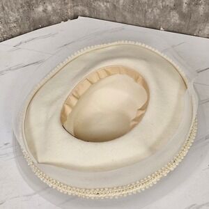 Keywords: vintage hat, church hat, formal hat, dress hat, wedding hat, cream hat, beaded hat, pearl hat, ladies hat, womens hat, special occasion hat, party hat, retro hat, vintage headwear