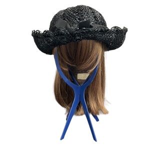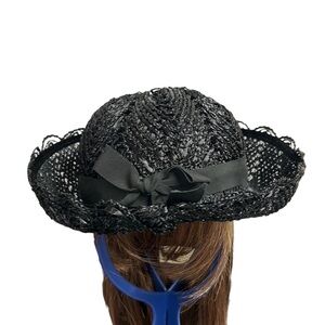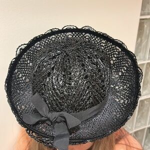 Vintage Church Hat Straw Black with Black Bow