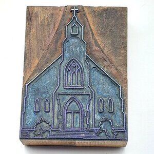 Vintage Church Letterpress Printing Block Newspaper Press Iowa Religious Decor