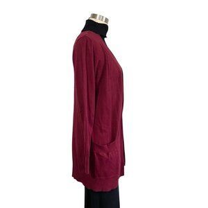 Vintage Cielo Burgundy Autumn Cardigan: Long Dark Fall Cardigan Sweater, Buttonless, Pockets, Coffee Shop Cardigan, 80s 90s Y2K
