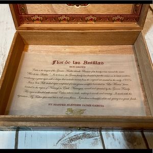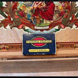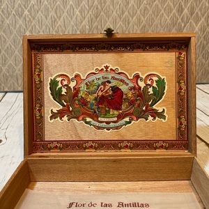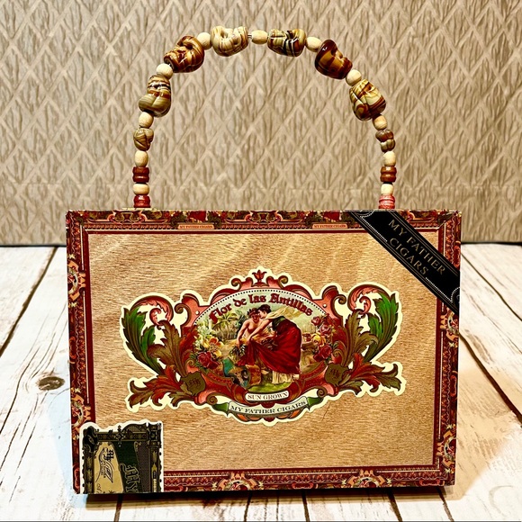 Flor de las Antilles “My Father Cigars” vintage, circa 1960s purse. Unique skull beads for the handle- comes with the original advertisement paper inside. “ By Master Blender Jaime Garcia” includes a box of Victoria Station Vintage side scratch matches. I acquired this at an estate sale. Perfect accessory!