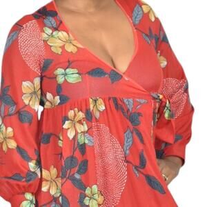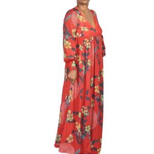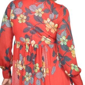 Vintage Cinandre Robe Red Floral Wrap Leisure Lingerie 70s Long Maxi Nylon Small