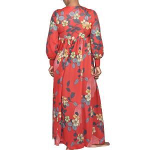 Vintage Cinandre Robe Red Floral Wrap Leisure Lingerie 70s Long Maxi Nylon Small