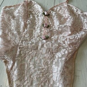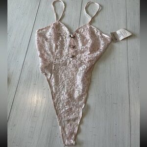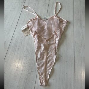 New with tags and unworn. Lace front and sheer chiffon back. Super high cut! Please see all pictures as they best describe this Teddie.