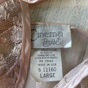 Designed by Tom Bezduda. This vintage Cinema Etoile Pink Lace String Thong Teddie in size Large is a high-cut lingerie piece perfect for adding a touch of sophistication to your intimate wardrobe.
