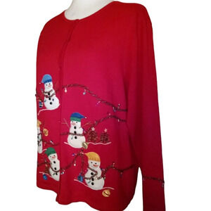 Vintage Cinnamon & Cinder Snowman Beaded Christmas Light Cardigan Size Large