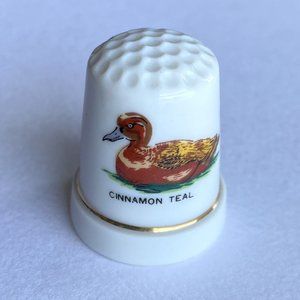 Vintage Cinnamon Teal Duck Porcelain Bisque Bone China Thimble with a Gold Painted Rim.