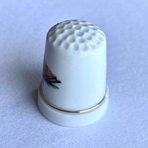Vintage Cinnamon Teal Duck Porcelain Bisque Bone China Thimble Gold Rim 1”