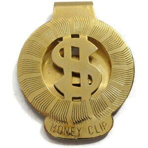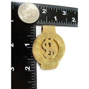 This unbranded Vintage Circle Dollar Sign Money Clip in gold is a chic and functional mini wallet for men. It efficiently holds your ID, credit cards, and cash in style.