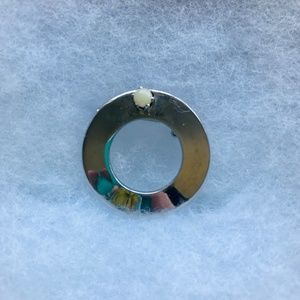 Vintage silver brooch with a single white bead at the top. Has a modernism vibe to it.