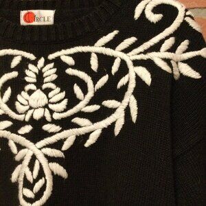 Vintage Circle Sweater Women's Size M Floral Embroidered Knitted Drop Shoulder
