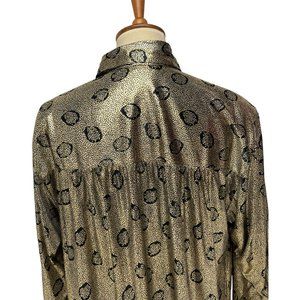 Vintage Circle o Square Women's Long Sleeve Bright Gold Collared Blouse Size 18