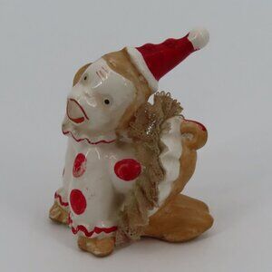 Vintage Circus Clown Monkey Ceramic Figurine 2.6in Red Polka Dot Tutu Skirt Hat