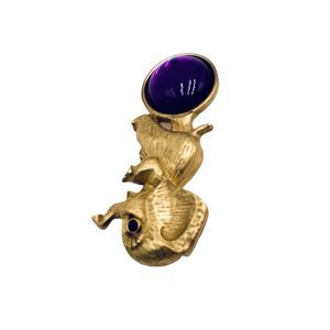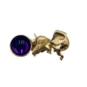 Vintage Circus Elephant Balancing Purple Jelly Belly Ball Gold Tone & Rhinestone