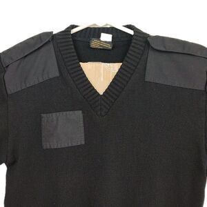 The vintage Citadel military men's pullover v-neck sweater in medium size and black color is a timeless piece of men's clothing. Made from acrylic material in a tight-knit style, this sweater features long sleeves and a classic v-neckline for a versatile and stylish look. The vintage Citadel brand adds a unique touch to this pullover sweater, making it a standout addition to any wardrobe. Easy to care for with machine washable instructions, this sweater combines comfort and style with its solid black color and classic design.